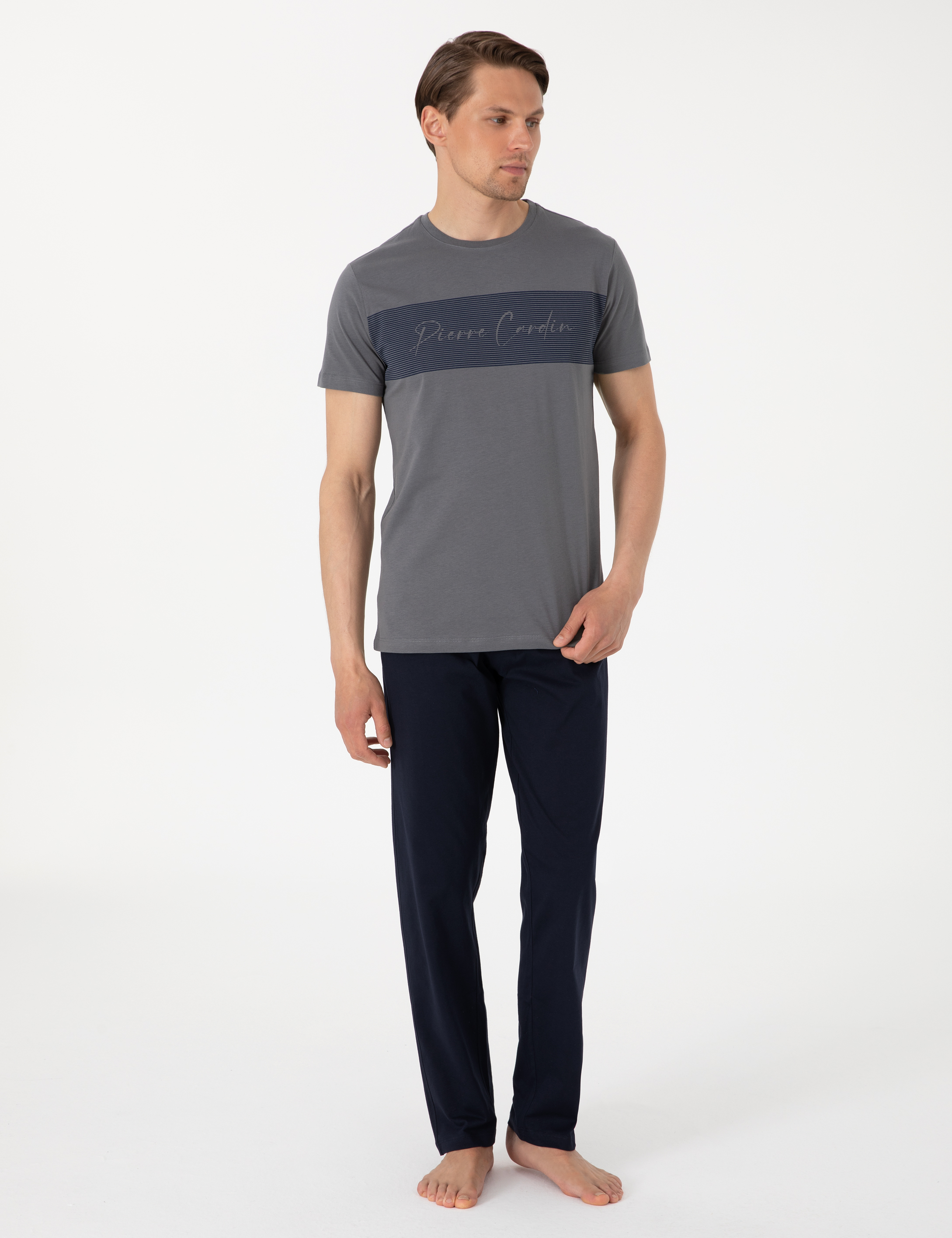 Koyu gri tonuyla modern ve sade bir görünüm sunan bu kısa kollu pijama takımı, ev içi konforu ve işlevselliği ön planda tutarak tasarlanmıştır. %100 pamuklu kumaşı sayesinde cilde nefes alabilirlik kazandırır, serin ve rahat bir kullanım sağlar. Üst bölümde yer alan ton uyumlu yazı baskısı ürüne dinamik bir detay katarken, bisiklet yaka kesimi ile günlük kullanıma uygun, şık bir siluet oluşturur. Lastikli bel yapısı, alt parçanın hareket özgürlüğünü artırmasına katkıda bulunur. Hafifliği ve pratikliğiyle, günlük ev giyimi ihtiyaçlarını karşılamak üzere ideal bir seçenektir.