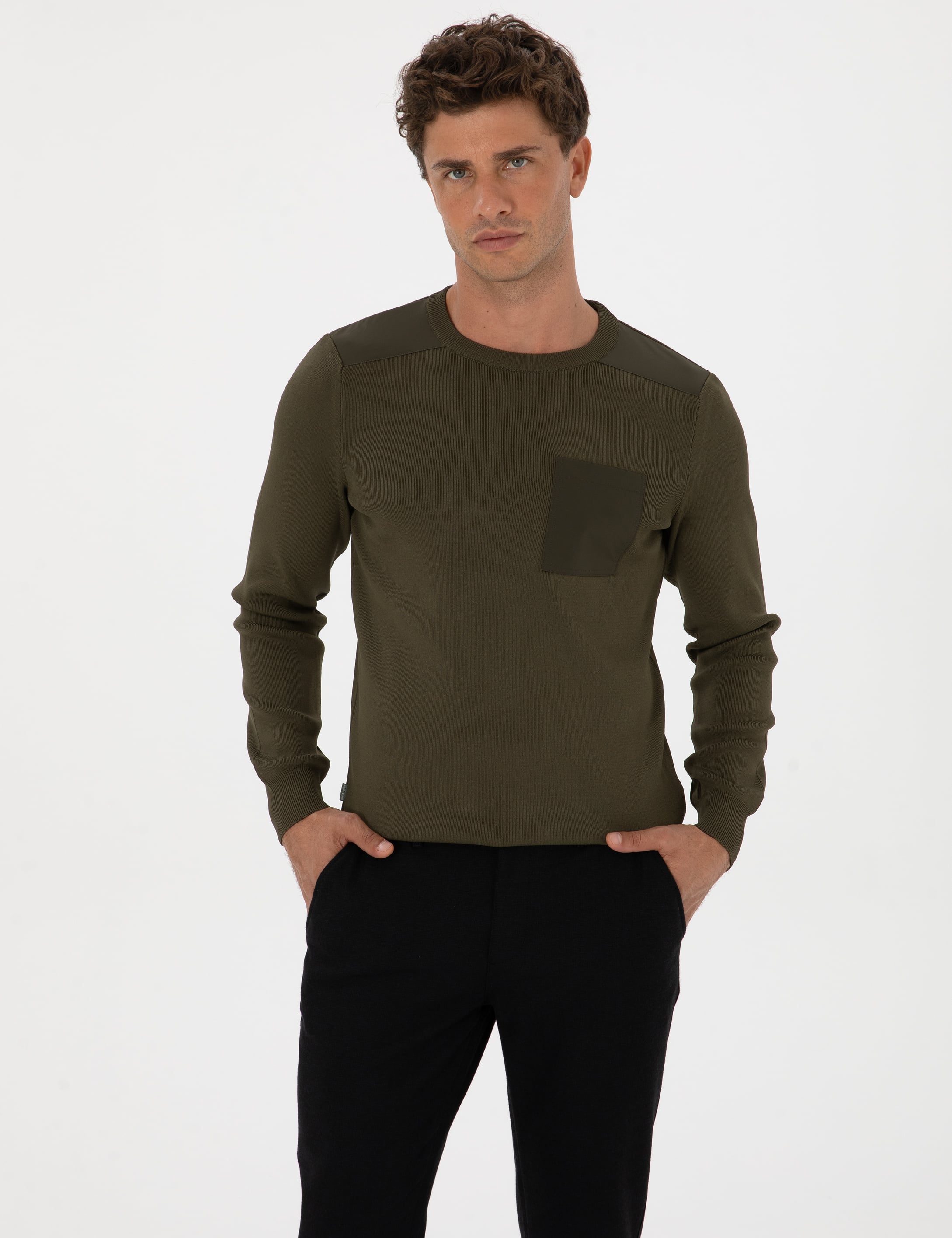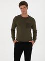 - Koyu Haki Regular Fit Bisiklet Yaka Triko Kazak