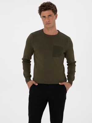 Koyu Haki Regular Fit Bisiklet Yaka Triko Kazak