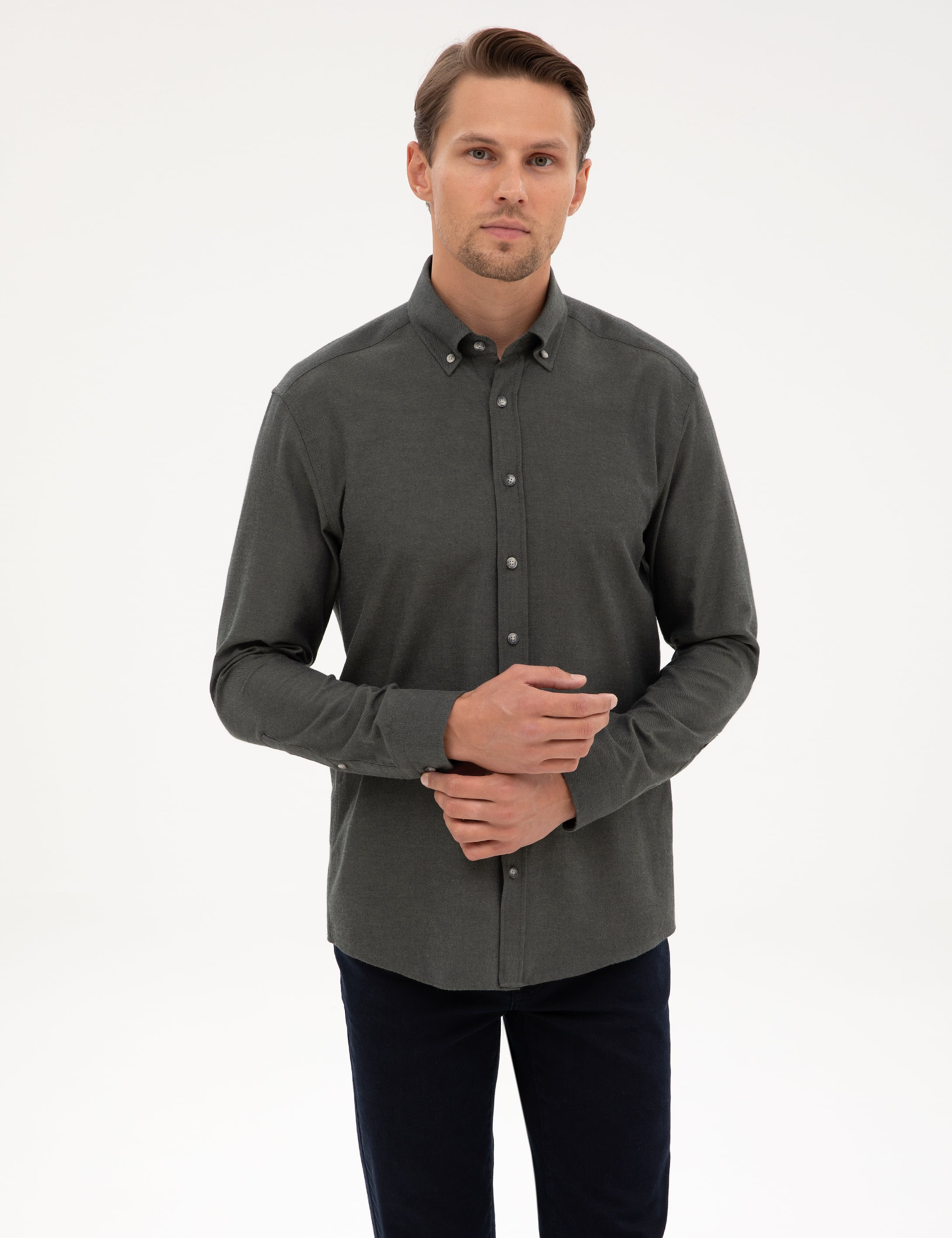 - Koyu Haki Regular Fit Uzun Kollu Gömlek