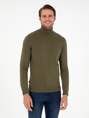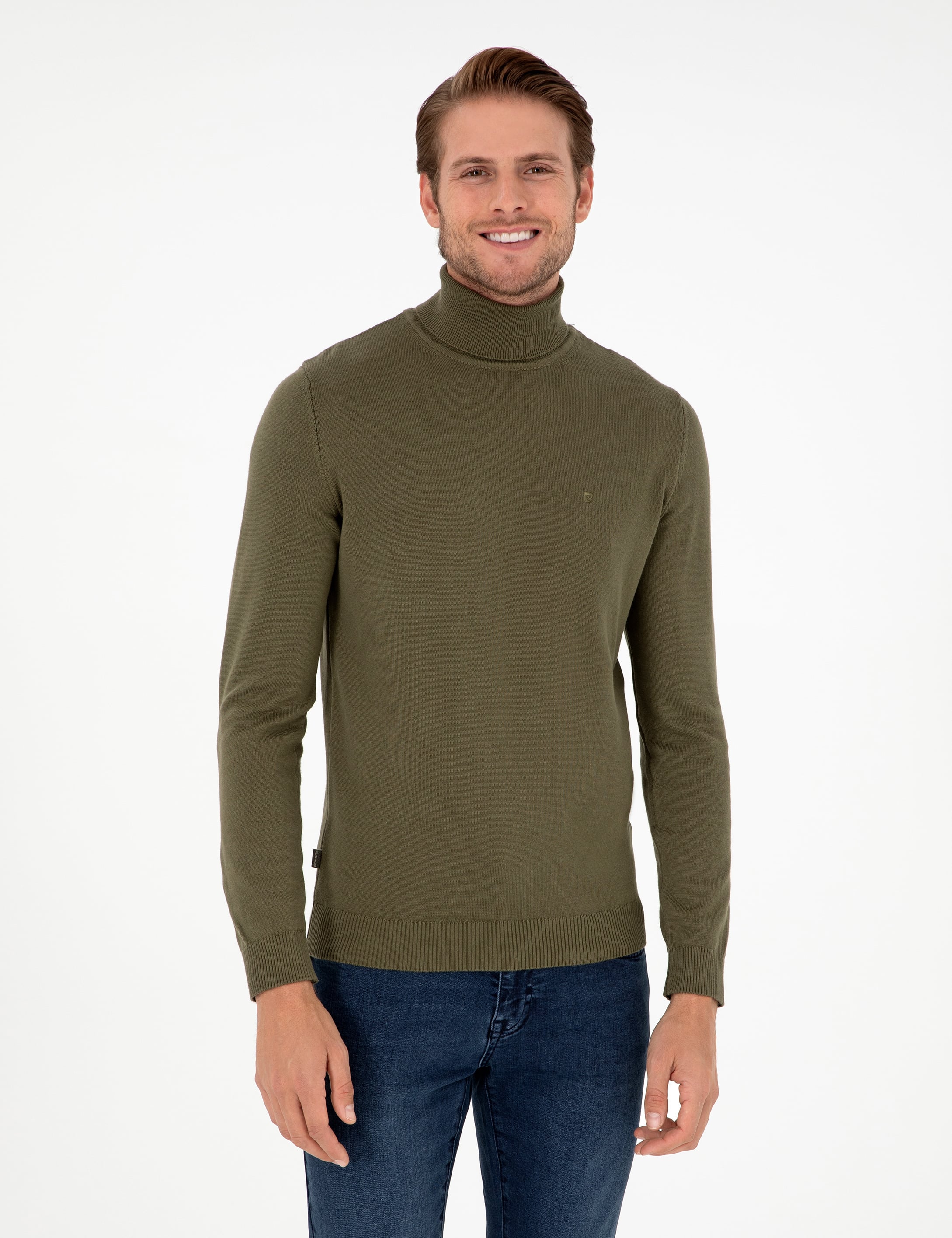 - Koyu Haki Slim Fit Balıkçı Yaka Basic Triko Kazak