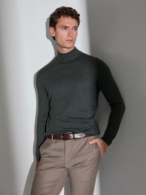 Koyu Haki Slim Fit Yarım Balıkçı Yaka Basic Triko Kazak
