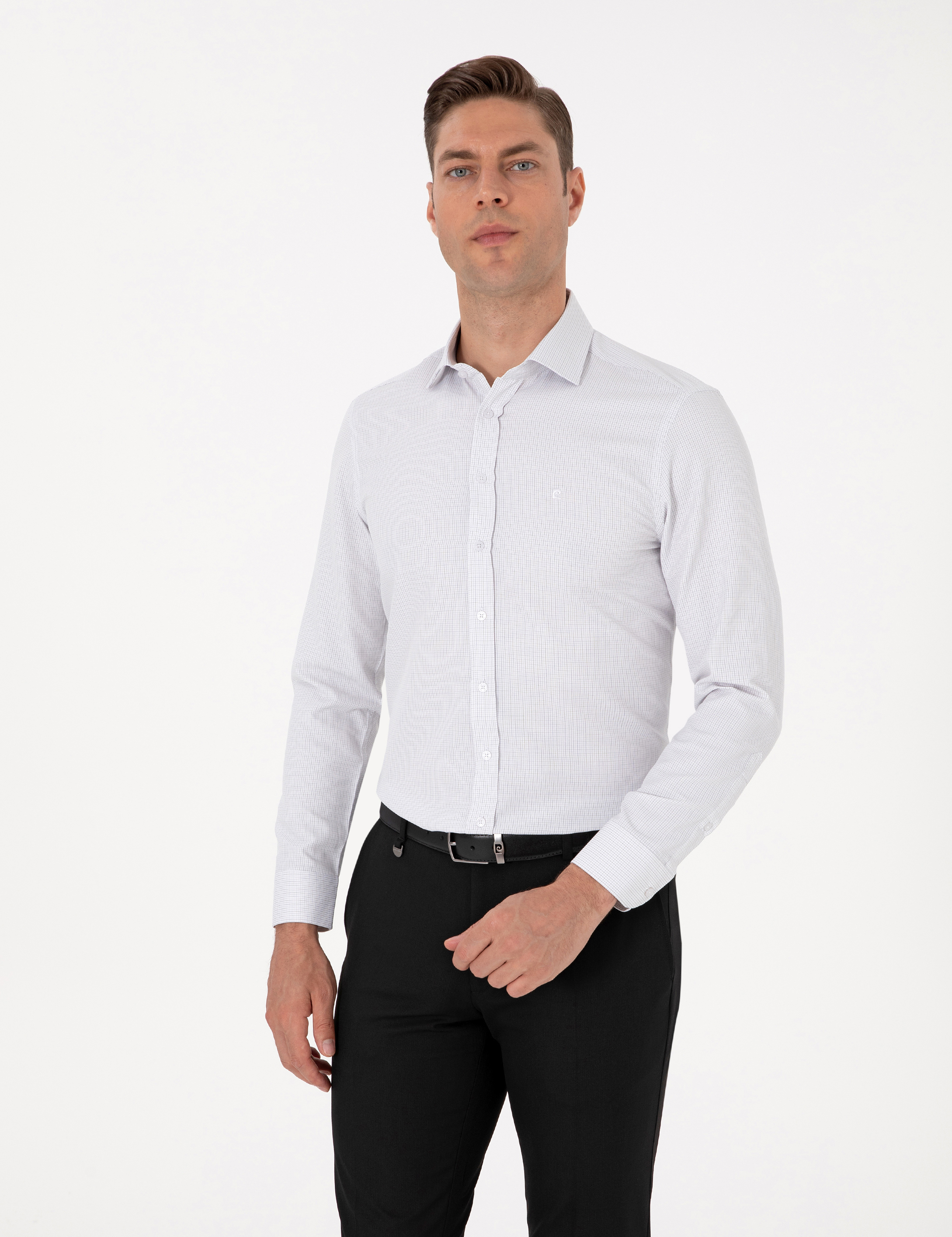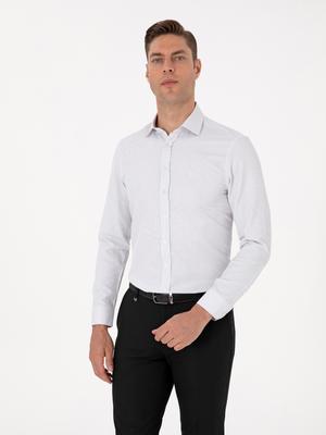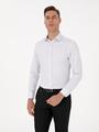 Mikro desenli beyaz gömlek, slim fit kesimi ile vücuda zarif bir şekilde oturarak modern bir görünüm sunar. Klasik yaka tasarımı ve cepsiz formu, temiz ve düzenli bir siluet oluştururken mikro desen detayı gömleğe ince bir hareket ve karakter katar. Hafif ve nefes alabilen kumaşı sayesinde hem ofis ortamında hem de günlük şıklıkta rahatlıkla tercih edilebilir. Zarif dokusu, takım elbiselerle kusursuz bir uyum yakalarken, chino veya kumaş pantolonlarla daha yarı-formal kombinlerde de kullanılabilir.