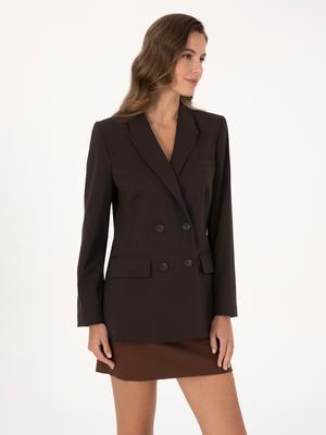 Koyu Kahverengi Regular Fit Kruvaze Ceket