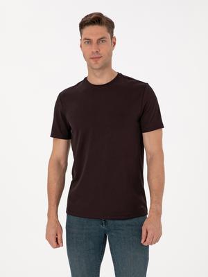 - Kahverengi Regular Fit Kalın Dokulu Bisiklet Yaka Basic Tişört