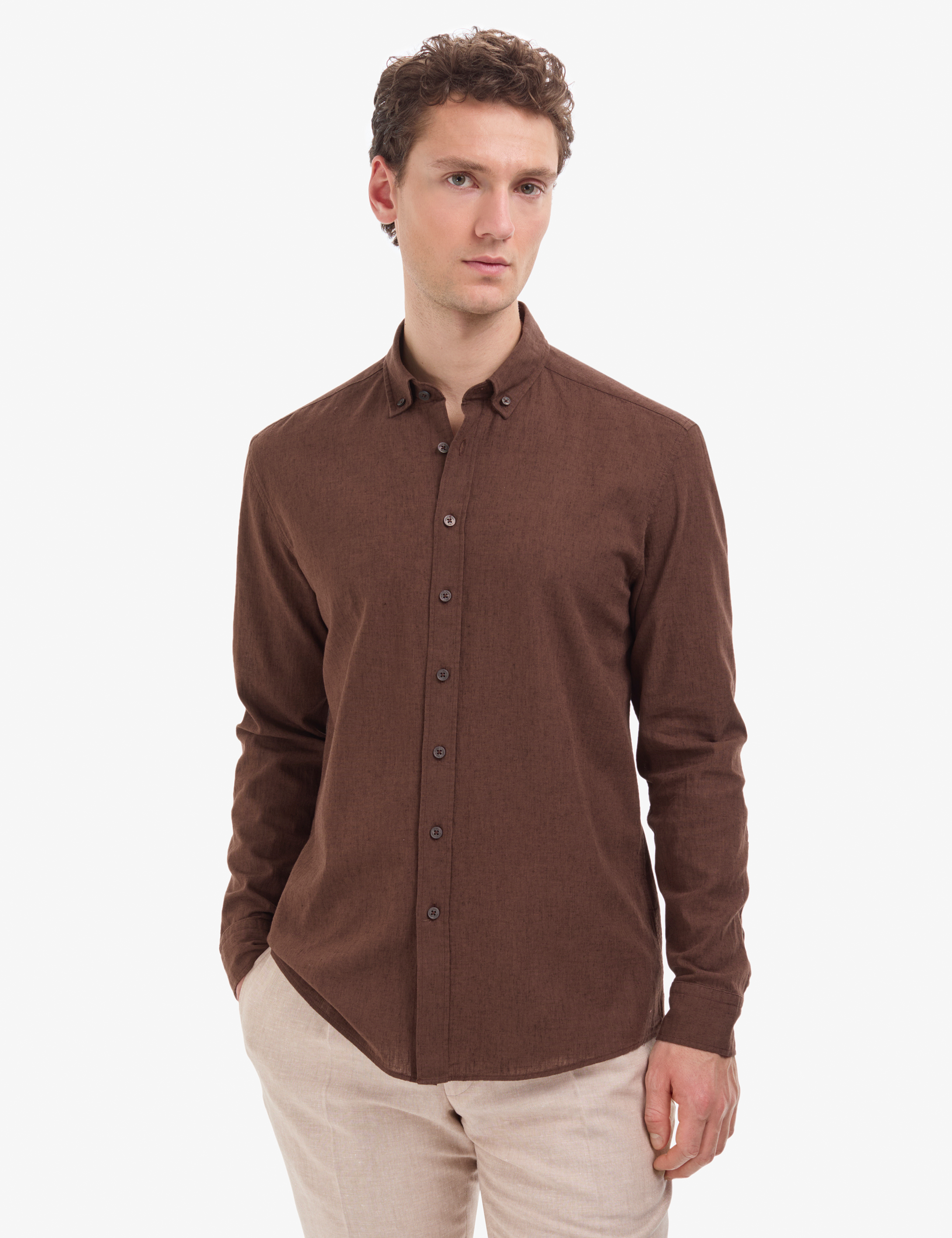 - Koyu Kahverengi Regular Fit Uzun Kollu Gömlek