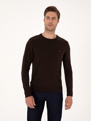Koyu Kahverengi Slim Fit Bisiklet Yaka Basic Triko Kazak