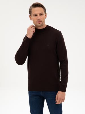Koyu Kahverengi Slim Fit Yarım Balıkçı Yaka Basic Triko Kazak