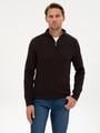 - Koyu Kahverengi Slim Fit Dik Yaka Fermuarlı Triko Kazak