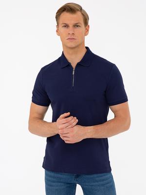 Koyu Lacivert Slim Fit Fermuar Detaylı Polo Yaka Tişört