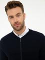 - Koyu Lacivert Slim Fit Fermuarlı Triko Hırka