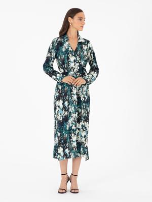 Koyu Yeşil Comfort Fit Dokuma Elbise