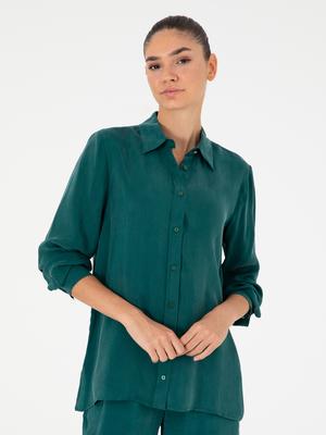 Koyu Yeşil Comfort Fit Uzun Kollu Gömlek