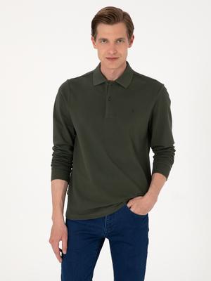 Koyu Yeşil Slim Fit Kıvrılmaz Polo Yaka Basic Pike Sweatshirt
