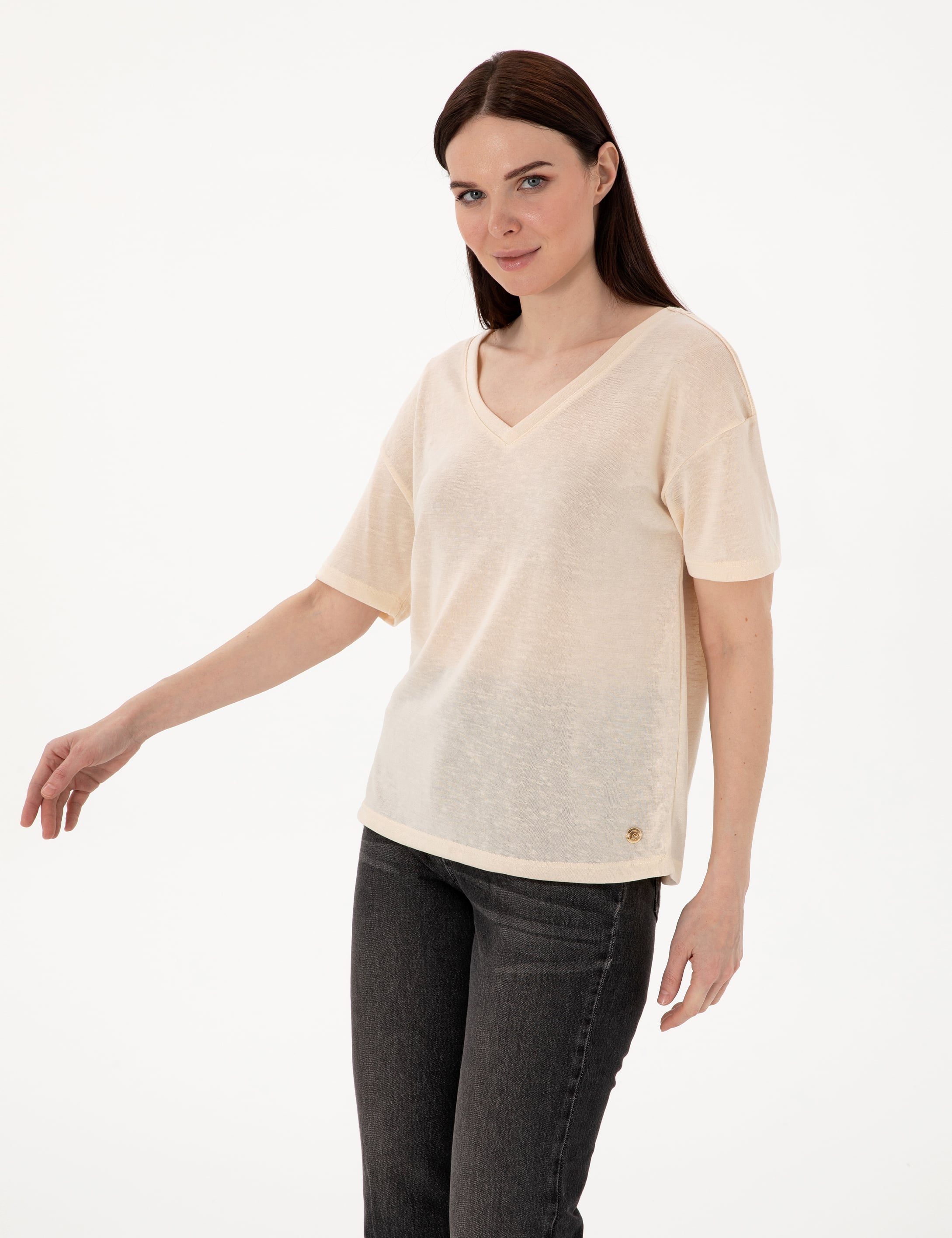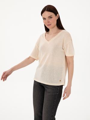 - Krem Comfort Fit Tişört