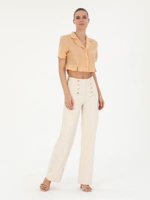 Krem Flare Hıgh Waist Pantolon