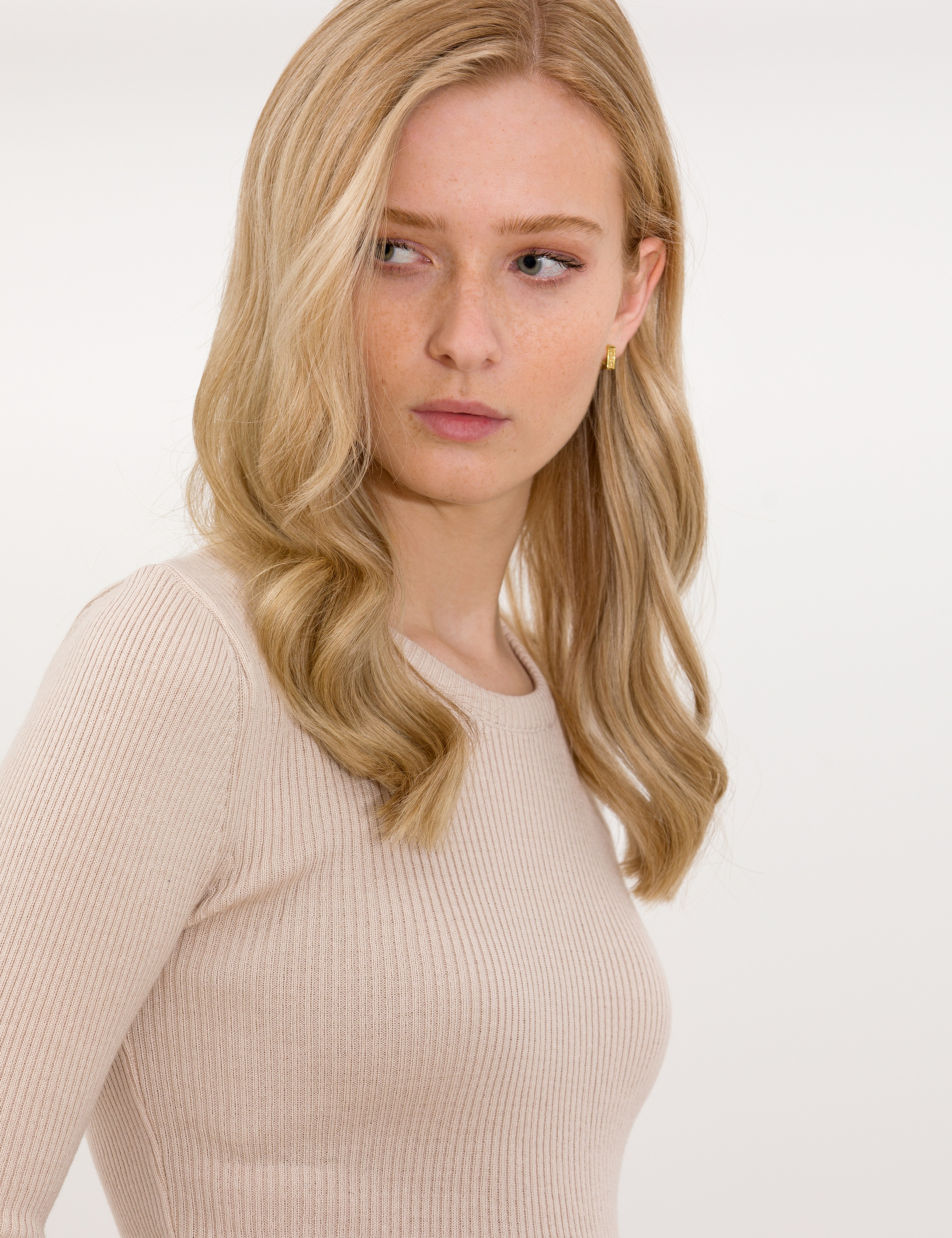 Krem Melanj SlimFit Bisiklet Yaka Basic Kazak