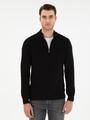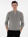 - Gri Melanj Slim Fit Fermuarlı Dik Yaka Triko Kazak