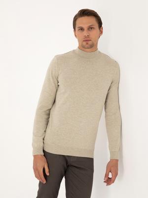 Kum Melanj Slim Fit Yarım Balıkçı Yaka Basic Triko Kazak