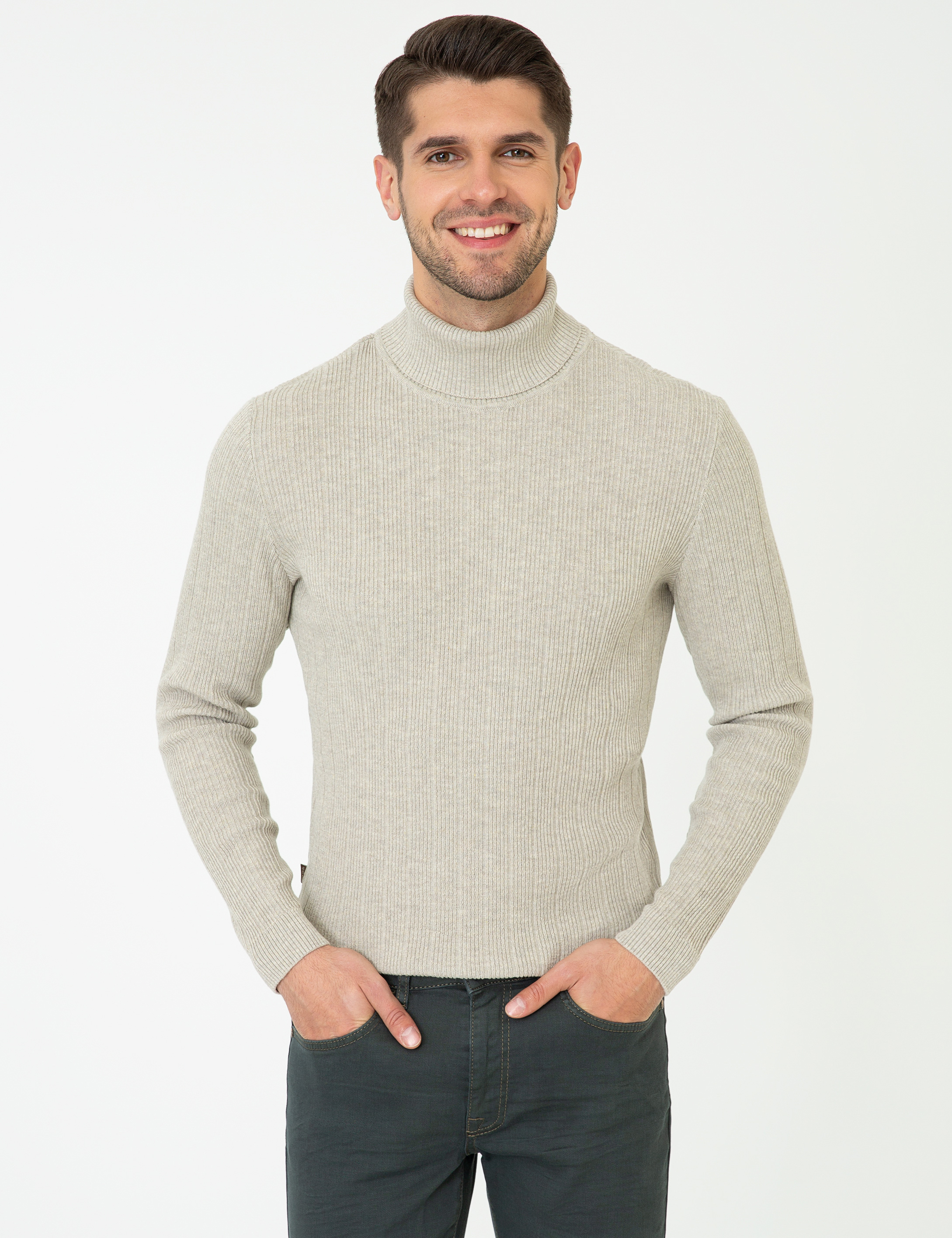 Kum Melanj Slim Fit Balıkçı Yaka Triko Kazak