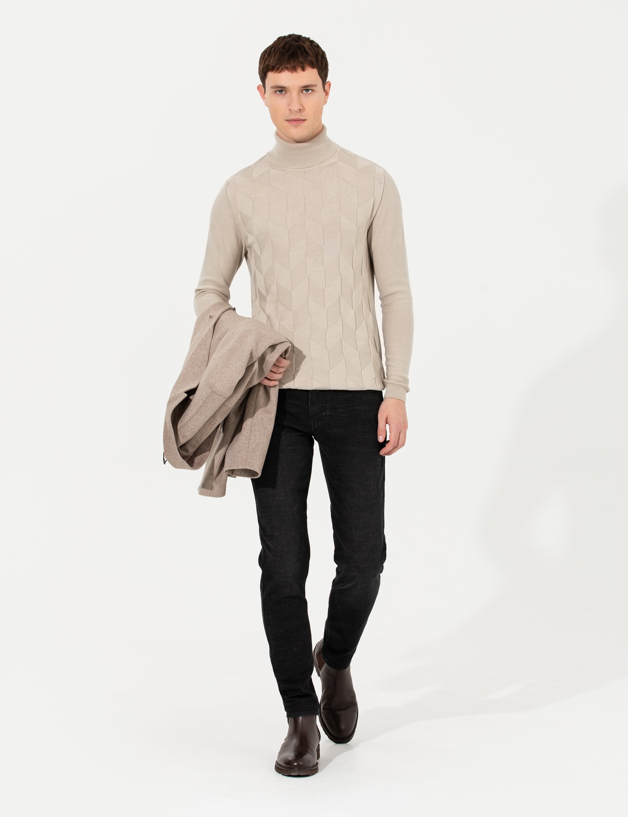 Kum Melanj Slim Fit Balıkçı Yaka Triko Kazak