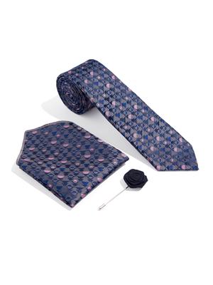 Lacivert 3'lü Kravat-Mendil-Kravat İğnesi Set