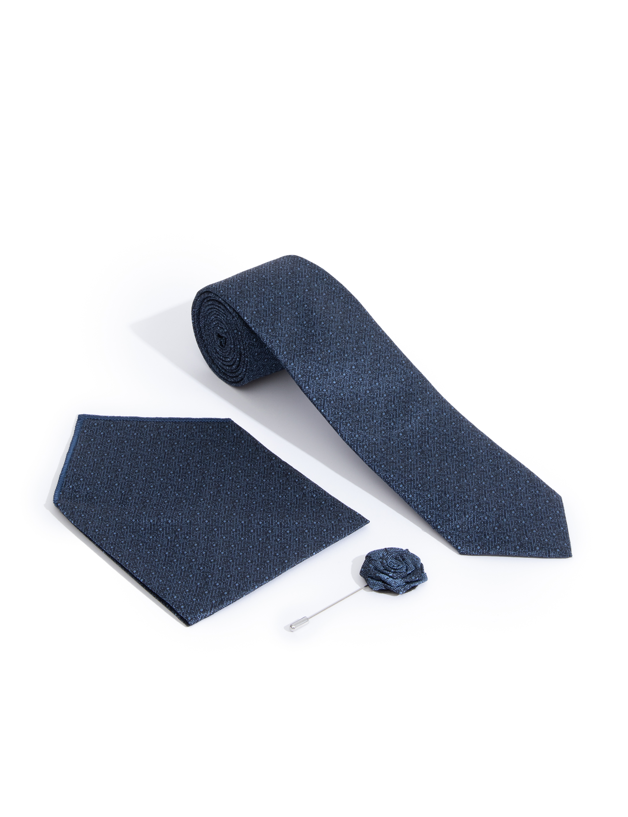 - Lacivert 3'lü Kravat-Mendil-Kravat İğnesi Set