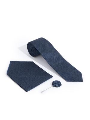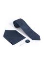 Lacivert 3'lü Kravat-Mendil-Kravat İğnesi Set