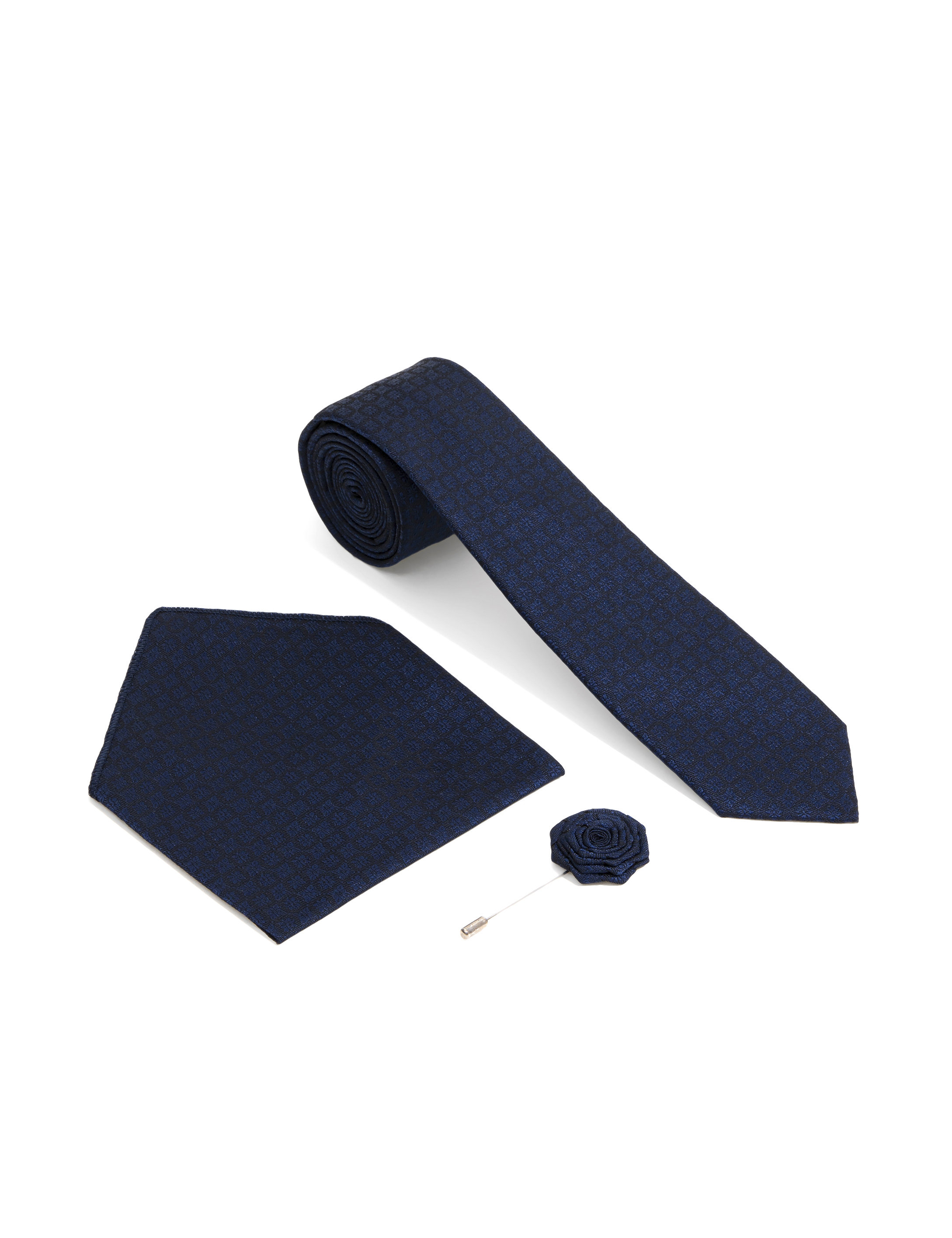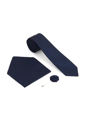 Lacivert 3'lü Kravat-Mendil-Kravat İğnesi Set