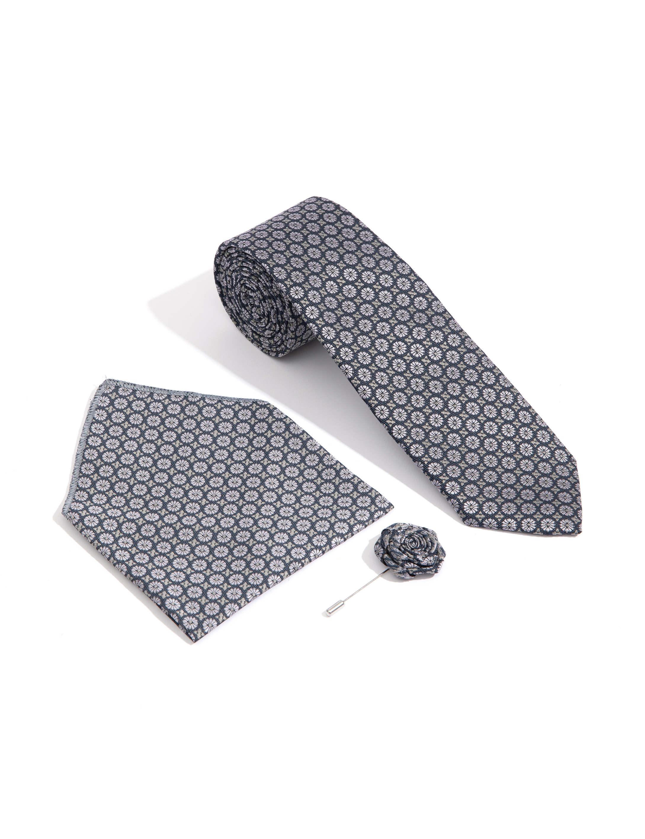 Lacivert 3'lü Kravat-Mendil-Kravat İğnesi Set