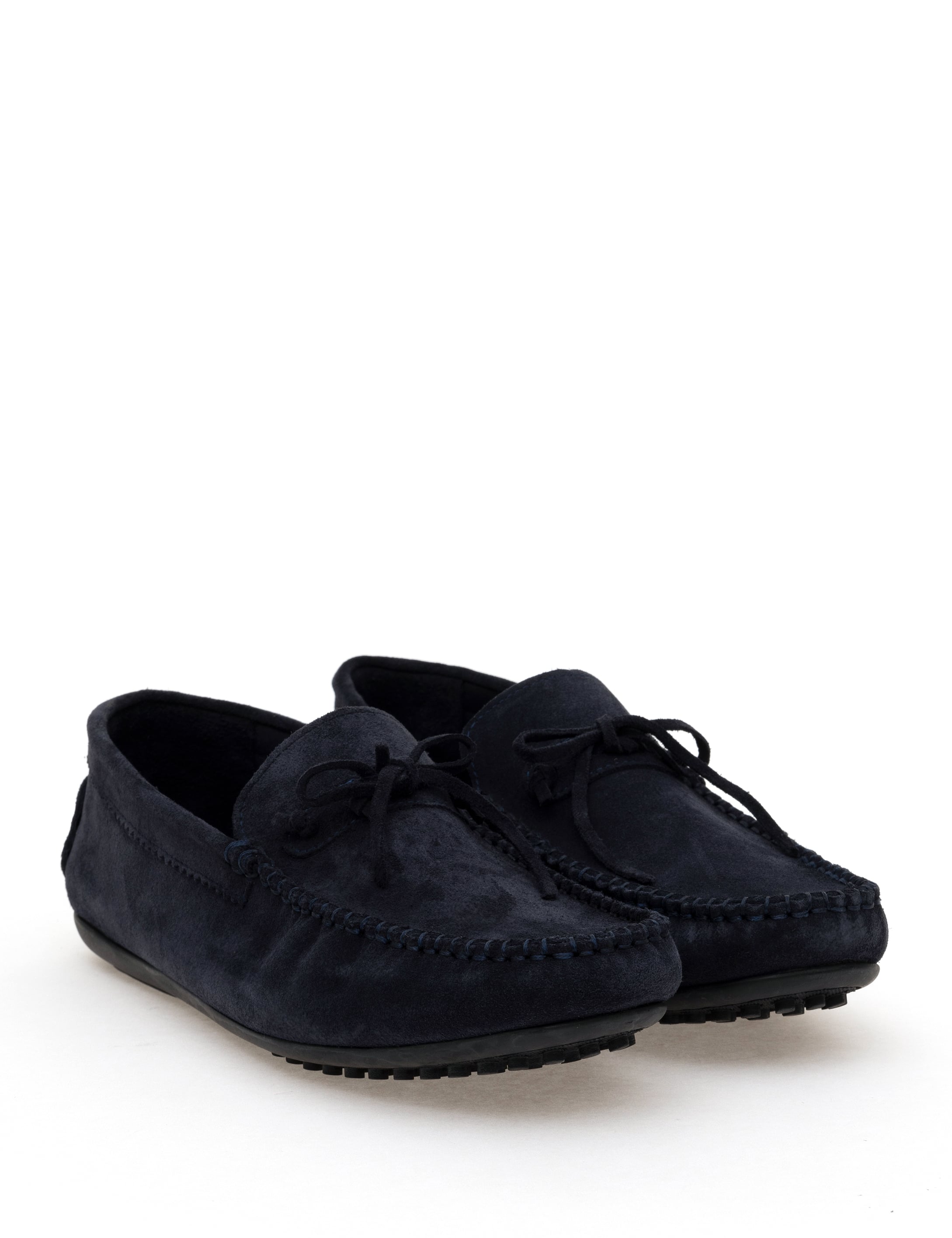 - Lacivert Kauçuk Taban %100 Deri Loafer Ayakkabı