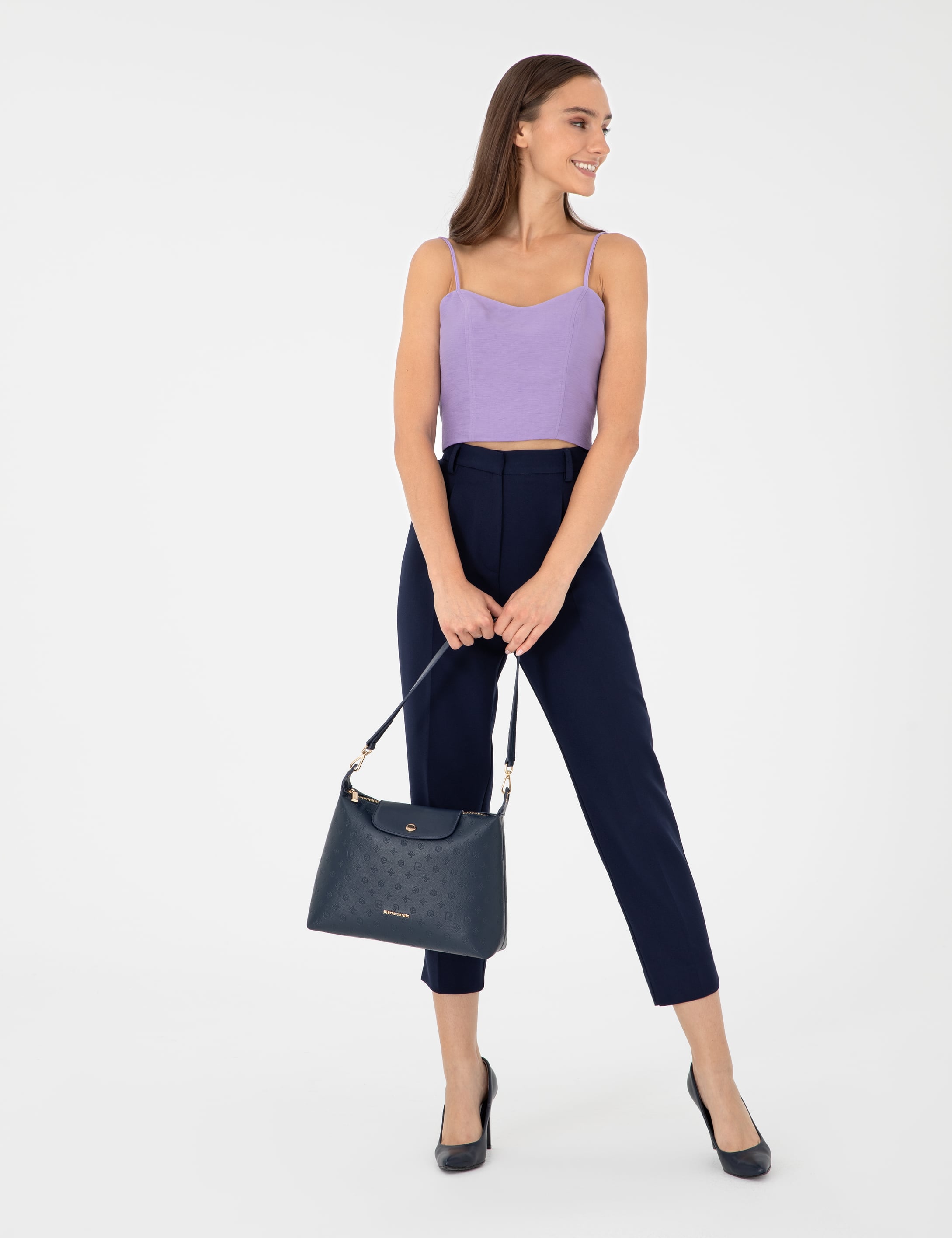 Çıkarılabilir omuz askısı mecuttur.; Fermuarlı ve çıtçıtlı kapama özelliğine sahiptir.; Genişlik x Yükseklik x Derinlik: 34x23x11 cm'dir.; İçerisinde 1 adet fermuarlı iç cep bulunmaktadır.; Telefon vb. eşyaları koymak için 1 adet fermuarsız iç cep bulunmaktadır.; Suni deri malzemeden üretilmiştir.; Pierre Cardin yazılı özel saklama kılıfı çanta içerisinde mevcuttur.; 2 yıl garantilidir.; Türkiye'de üretilmiştir.