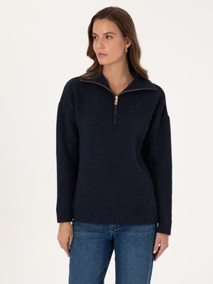 - Lacivert Comfort Fit Fermuarlı Dik Yaka Kazak