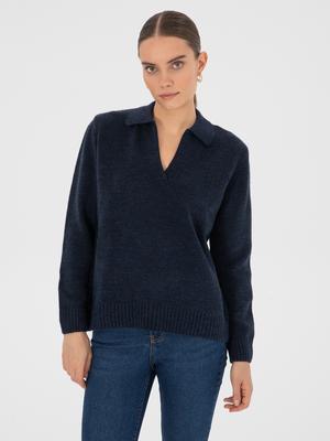 - Lacivert Comfort Fit Polo Yaka Kazak