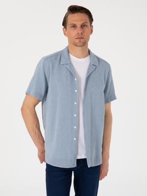 - Lacivert Comfort Fit Kısa Kollu Gömlek