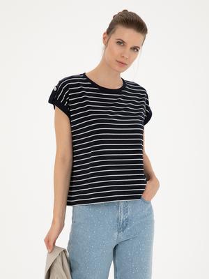 Lacivert Comfort Fit Çizgili Tişört