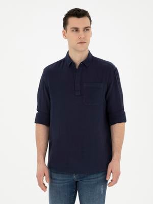 - Lacivert Comfort Fit Uzun Kollu Gömlek