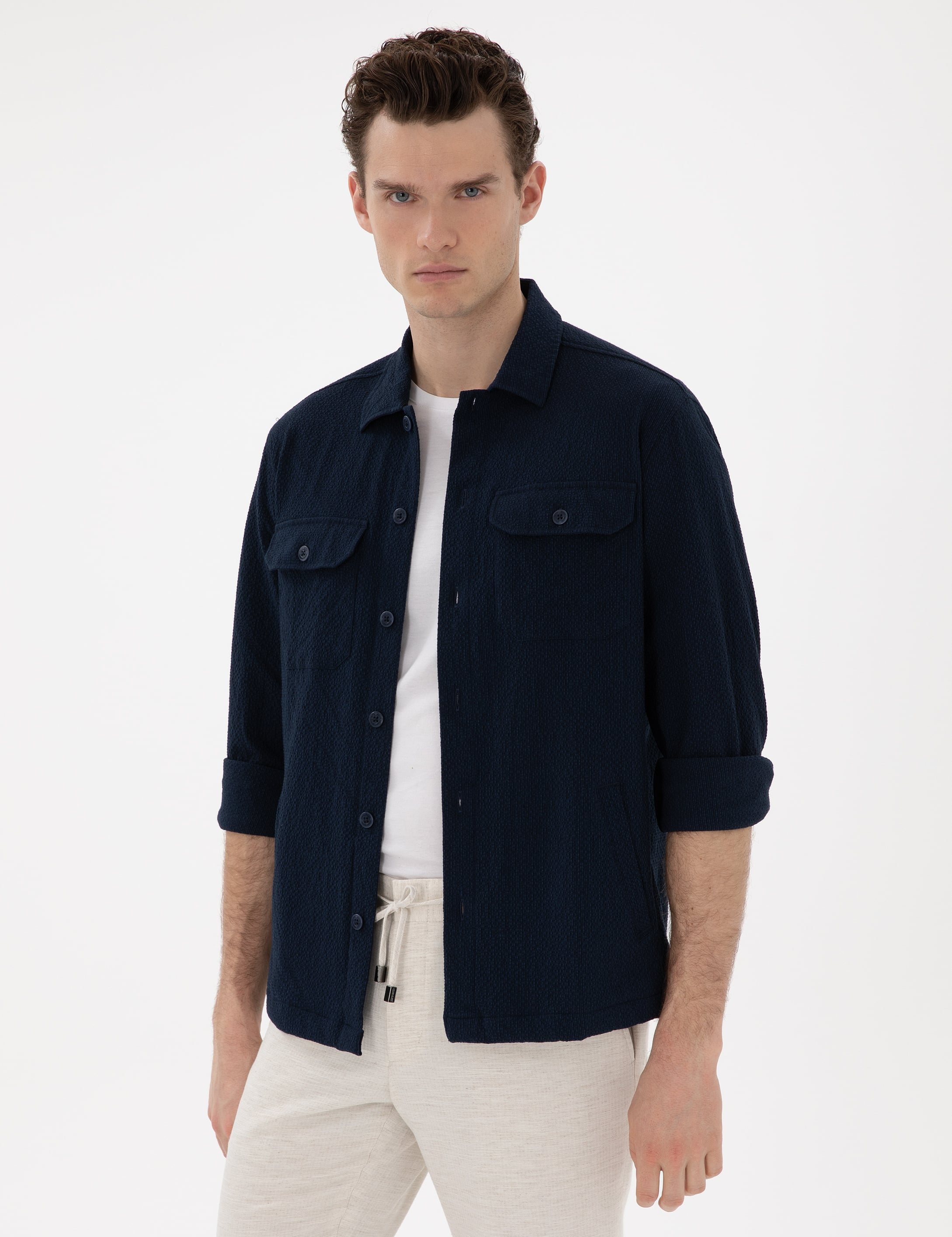 - Lacivert Rahat Kalıp Uzun Kollu Gömlek