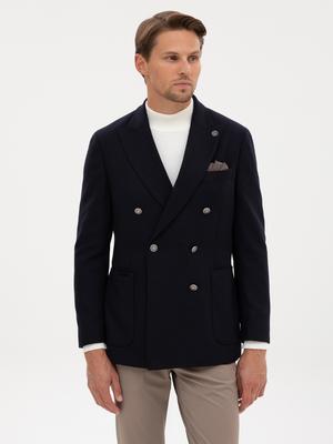 Lacivert Ex. Slim Fit Yün Karışımlı Kruvaze Ceket