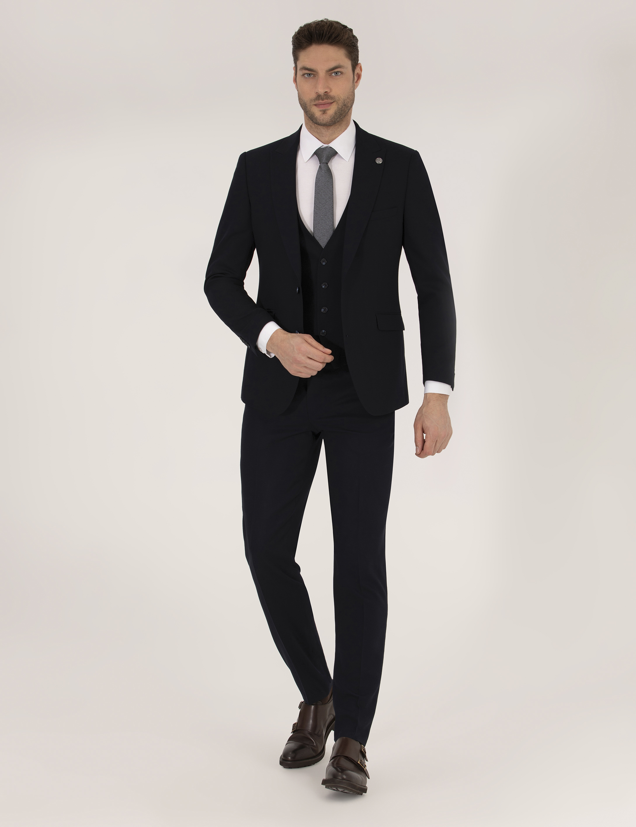 Lacivert Yelekli Ex. Slim Fit Takım Elbise