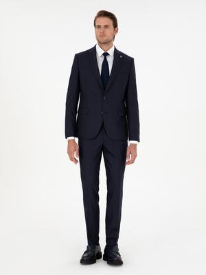 - Lacivert Ex. Slim Fit Çizgili Yünlü Takım Elbise
