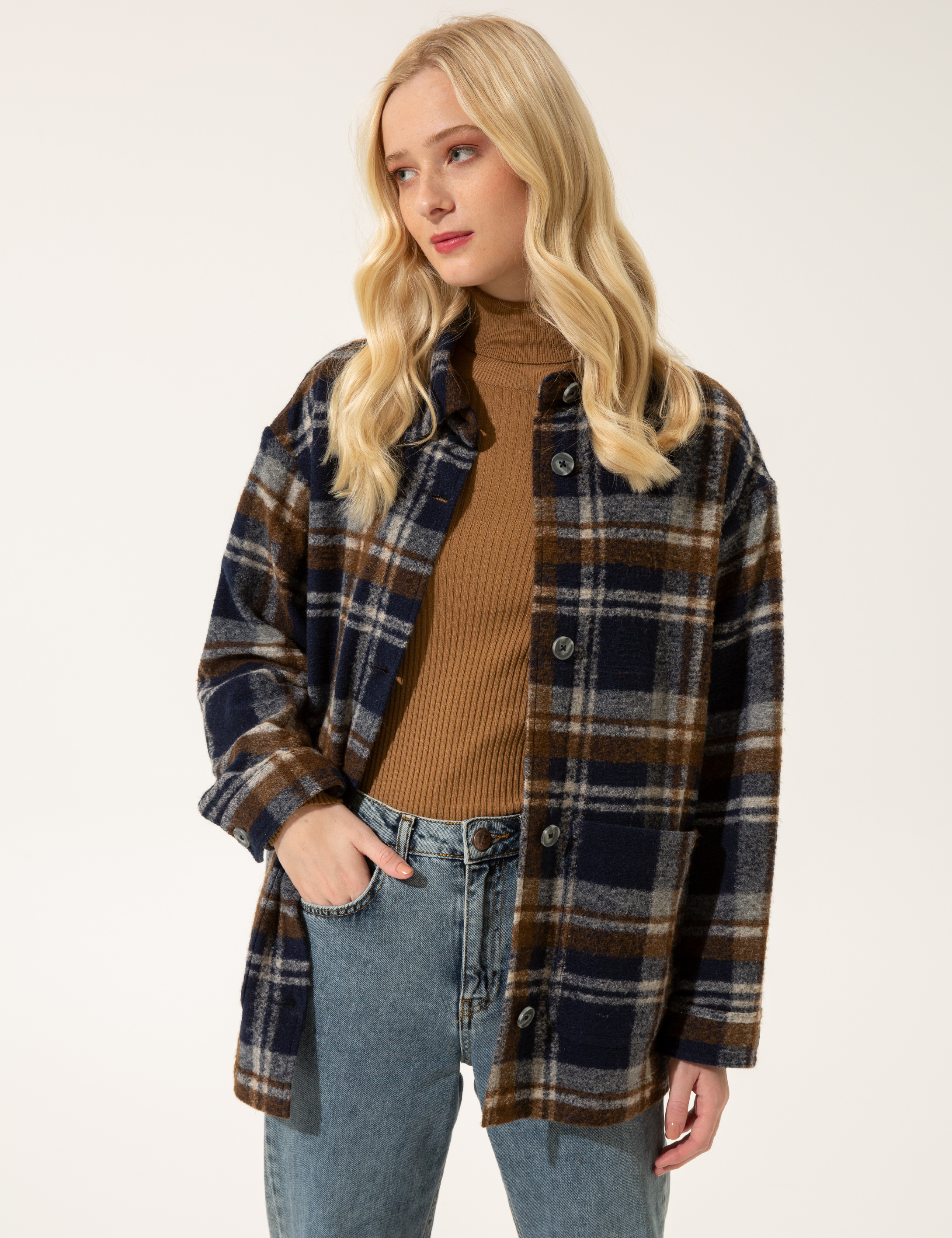 Lacivert Kaşe Kaban