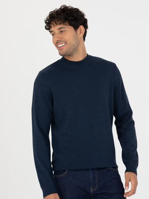 Lacivert Melanj Slim Fit Çeyrek Yaka Basic Triko Kazak