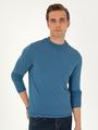 Lacivert Melanj Slim Fit Çeyrek Yaka Basic Triko Kazak