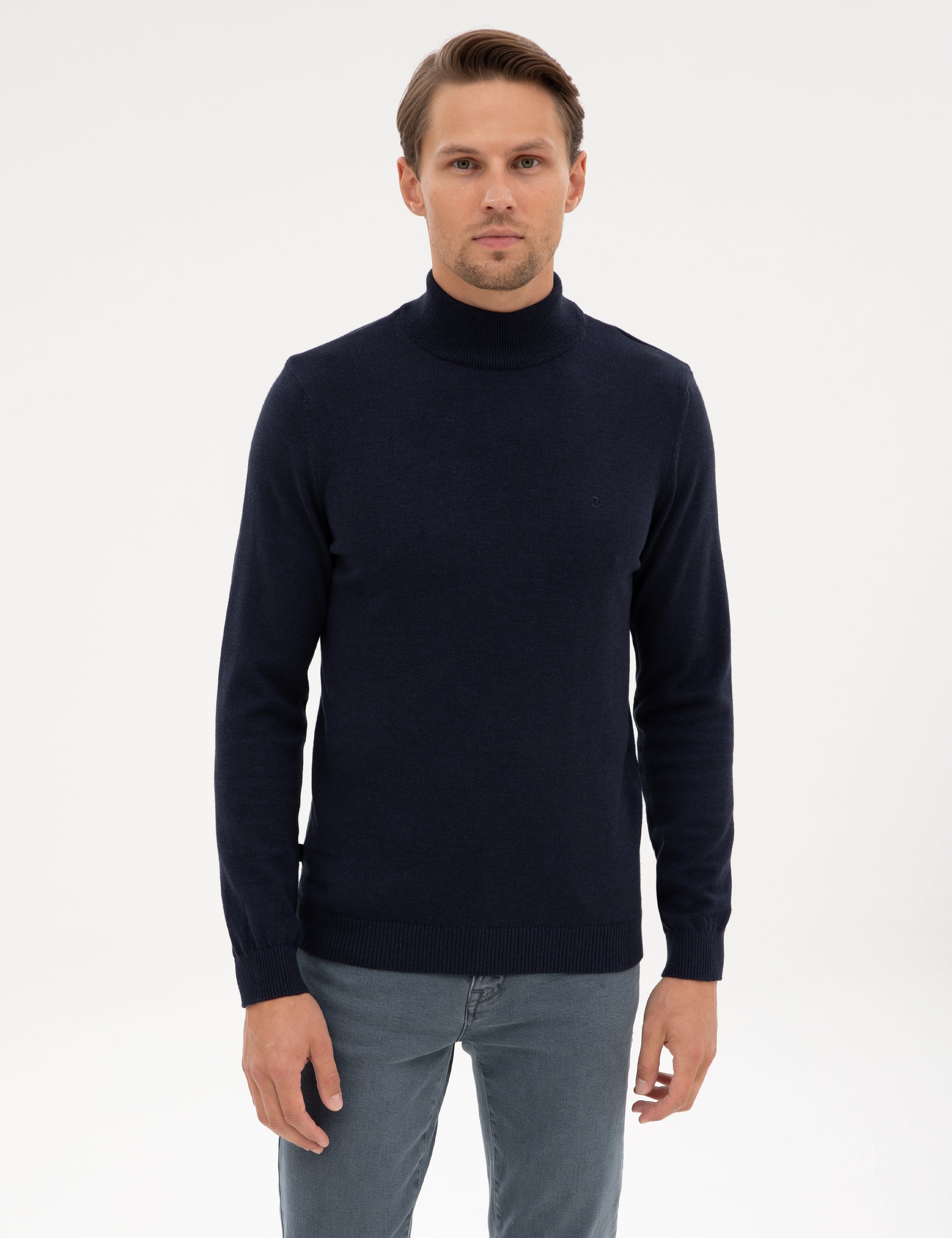 Lacivert Melanj Slim Fit Yarım Balıkçı Yaka Basic Triko Kazak
