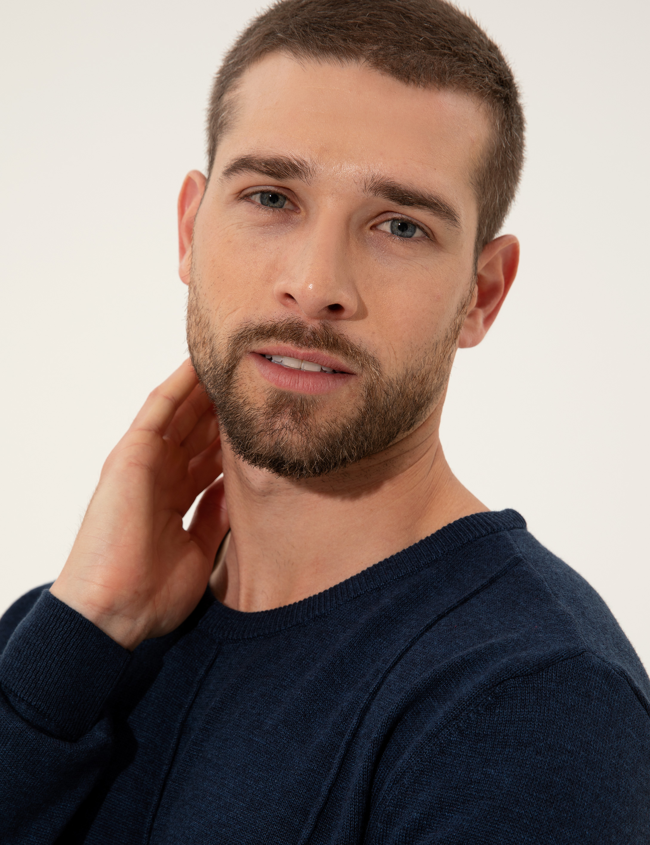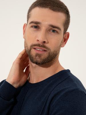Lacivert Melanj Slim Fit Bisiklet Yaka Triko Kazak