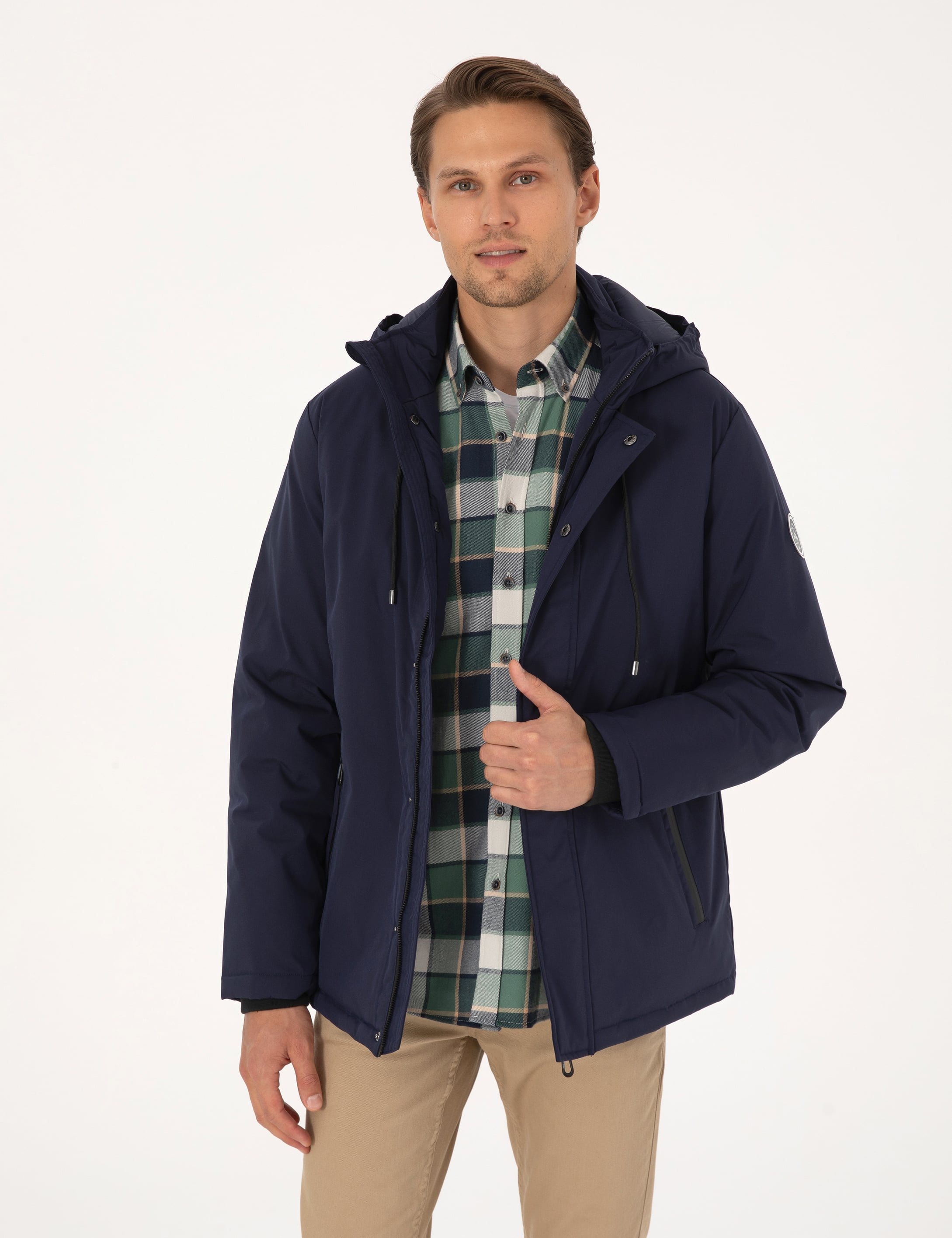 Lacivert Kapüşonlu Mont
