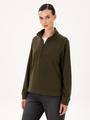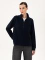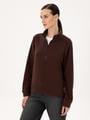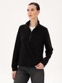 Bu lacivert kadın sweatshirt, sıcak tutan polar dokusu ile konforlu bir kullanım sunar. Ürünün oversize tasarımı spor bir görünüm sağlamakta, comfort kalıbı ise gün boyu rahatlık vermektedir. Yarım fermuarlı yaka detayı şık kullanım imkanı tanımaktadır.