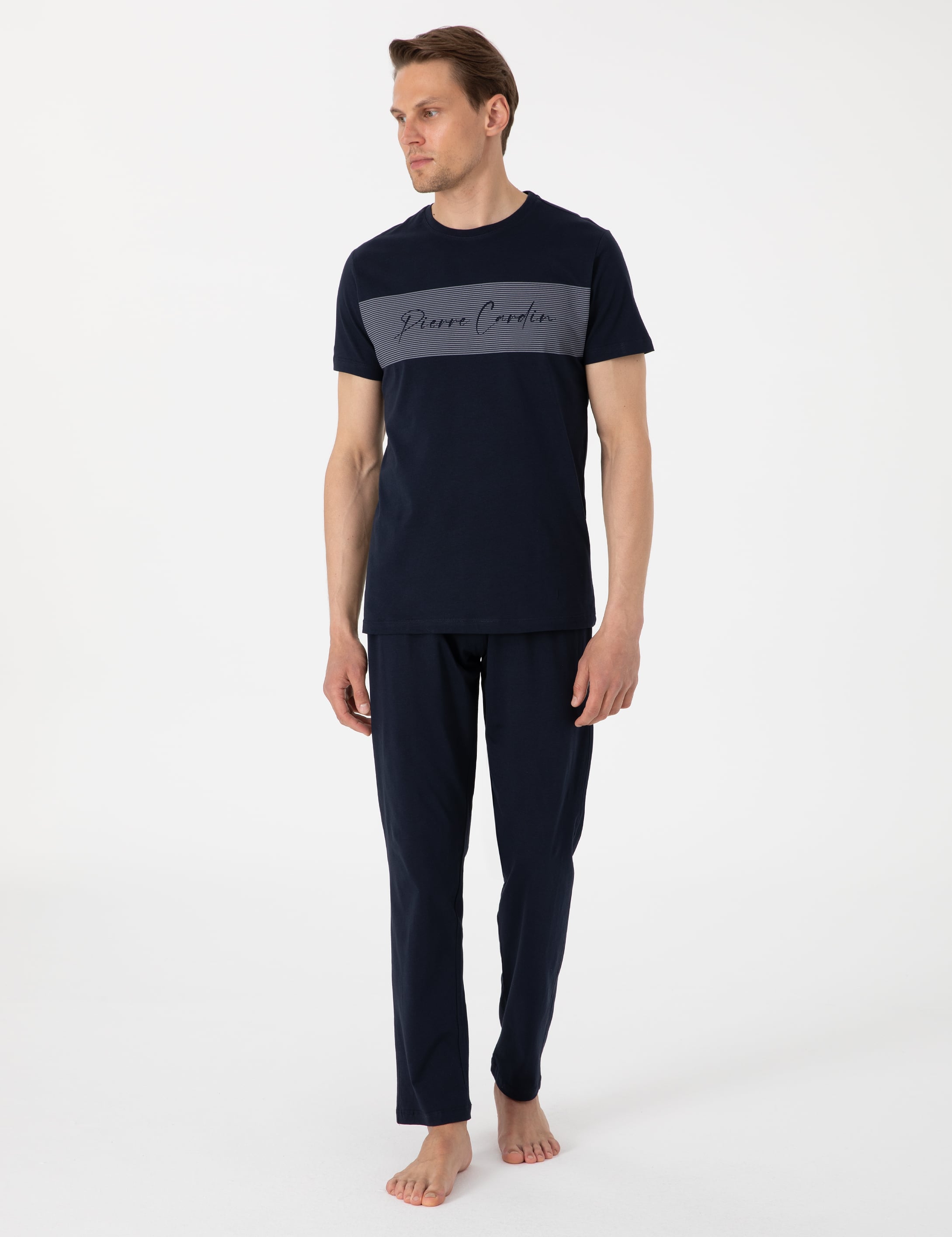 Lacivert renkli bu kısa kollu pijama takımı, sade çizgisini göğüs bölümündeki yatay yazı detayıyla modern bir şekilde tamamlıyor. Üst parçada yer alan bu yazı motifi, takıma sportif bir hava katarken, düz kesim pantolonla bir araya geldiğinde minimal bir şıklık ortaya çıkıyor. %100 pamuklu kumaşıyla yumuşak bir dokunuş sağlayan takım, nefes alabilen yapısı sayesinde hem cildin hava almasına olanak tanır hem de gün boyu ve gece boyunca konforlu bir kullanım sunar. Bisiklet yaka detayı, esnek bel bandı ve rahat kesimiyle pijama altı hareket özgürlüğünü destekler. Evde dinlenirken, sabah kahvenizi içerken ya da gece rahat bir uyku arayışınızda bu takım beklentilerinizi karşılayacak nitelikte. Şıklık ve rahatlığı bir arada arayanlar için zamansız ve kullanışlı bir alternatif sunar.