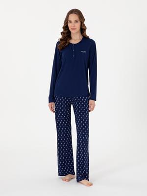 Lacivert Uzunkol Pijama Takımı